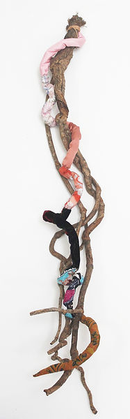 Estas obras resgata o vegetal morto do meu Jardim com os retalhos das confecções de vestido, feito por mim, para minhas filhas. De um lado as ramificações do vegetal por outro com o caminho percorrido por elas na juventude. Houve, nesta época, um corte do cordão umbilical familiar para um caminhar de suas escolhas.